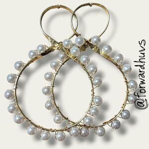 Bundle Sale 3 for $15 | Large Gold Tone Double Hoop Faux Pearl Statement Earring