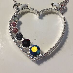 This listing includes two earring necklace sets from Walmart. These are both 18 inches and one includes a triple heart necklace with heart earrings and the other includes pink gemstone earrings with a silver tone heart chain and multi colored gemstones. These are not high end and retailed for $4.99 each.