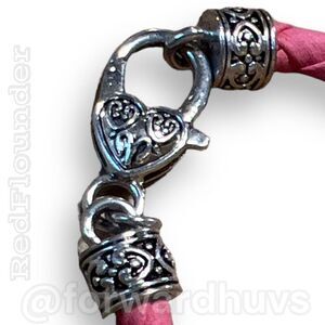 The bracelet features a charming pink braided fabric band that exudes a sense of femininity and warmth. The fabric not only looks lovely but feels comfortable.