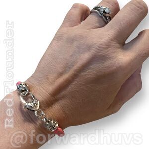 Securing the bracelet is a silver-tone metal clasp. This clasp is not only aesthetically appealing but also ensures a secure closure, preventing the bracelet from slipping off accidentally.