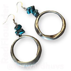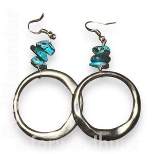 Imagine the allure of Southwest style encapsulated in a pair of Silver Tone Dangling Circle Earrings. The intricate design showcases a captivating interplay of tradition and artistry. Adorned with Turquoise Chips, these circles exude a rustic charm that resonates with the earthy landscapes of the region.