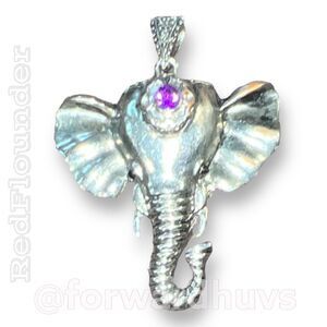 This exquisite silver tone elephant pendant, adorned with a dazzling purple rhinestone set into its head, embodies the majestic symbolism of elephants. These creatures are revered for their wisdom, strength, and good luck.