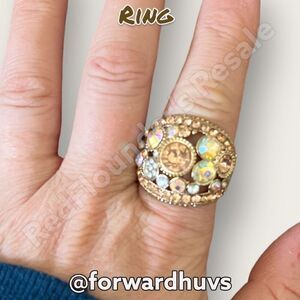 This listing is for a stretch ring which is so cute and embellished for tons of sparkling color. This item is in good preowned condition. This has no stains or significant damage and has been stored well in a pet friendly and smoke free home.