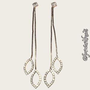 The earrings are adorned with shimmering rhinestones that glisten in the light, adding a touch of ethereal beauty. At the top, a single rhinestone anchors each earring, serving as a dazzling focal point that draws attention to your refined style.