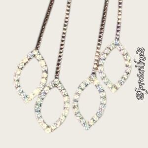 The bottom of each strand is adorned with a line of rhinestones made into the shape of a marquise-shaped rhinestone.