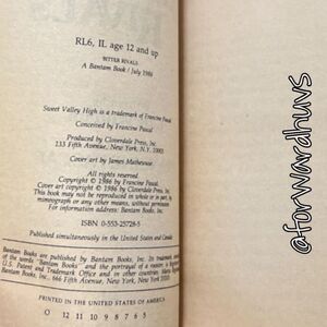 This listing is for Sweet Valley High | Bitter Rivals | Vintage 1986