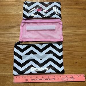 Featuring a stylish black and white chevron design adorned with delightful pink flamingos, these cases add a touch of whimsy to your beauty routine.