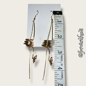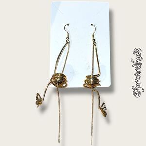What makes these earrings especially delightful is the charming butterfly charm that dangles at the end. This small, detailed butterfly adds a playful and whimsical touch to the overall design. The combination of the gold-tone metal and the butterfly motif makes these earrings both fun and elegant, perfect for various occasions.
