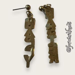 This is a cute pair of earrings which are old and in fair condition. They are enamel and one earring says happy while the other says Easter.