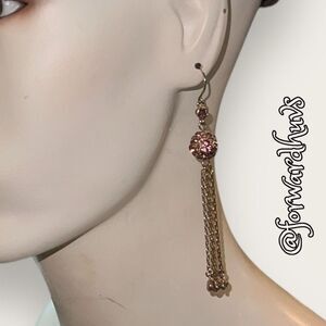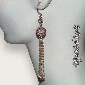 These earrings are not just a piece of jewelry; they're a statement. The pink rhinestones catch the light beautifully, adding a touch of sparkle and sophistication.