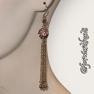 Measuring 3 inches from top to bottom, these earrings feature a stunning chain design adorned with pink rhinestones.