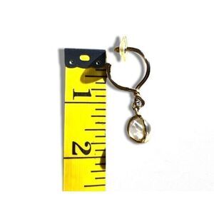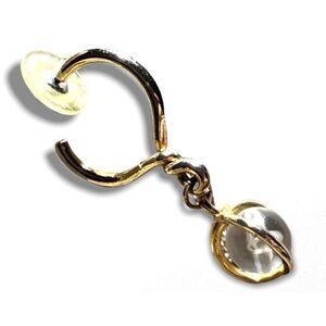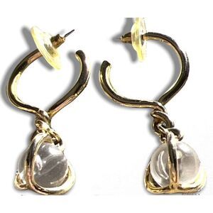 The design features a clear plastic ball gracefully dropping from a hoop stud, creating an eye-catching and contemporary look. Measuring approximately one and three-quarter inches from top to bottom, these earrings strike a balance between elegance and modernity.