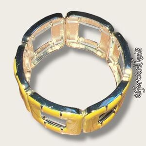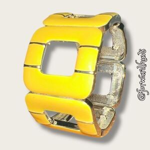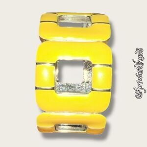 Add a touch of elegance and color to your jewelry collection with this vibrant yellow and silver-tone metal stretch bracelet. The design features square-shaped yellow enamel segments, beautifully connected by sleek silver-tone metal links. The bracelet is stretchable, making it easy to wear and ensuring a comfortable fit for most wrist sizes.