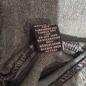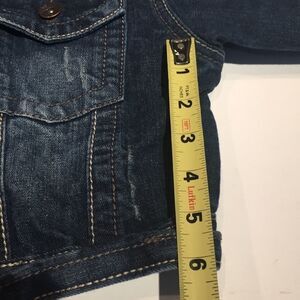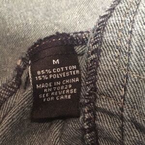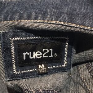 This is a Rue 21 Jean jacket in size medium. This Jean jacket is super cute and is made from 85% cotton, 15% polyester. This jacket is machine wash cold and tumble dry low inside out.