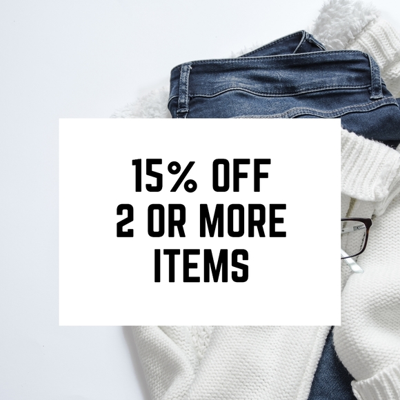 Get 15% off 2 or more items when you shop my closet.