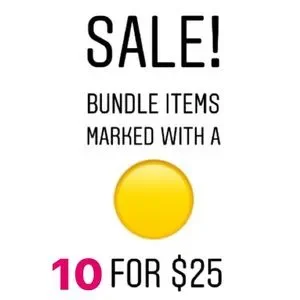 Click add to bundle any 5 items that have a ๐ŸŸก for $25!