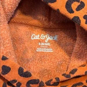 Cat & Jack leopard print hooded sweatshirt size small 6/6x. Sweatshirt is in good used condition with some fading from wash but no stains. Comes from dog friendly home.