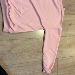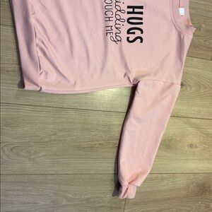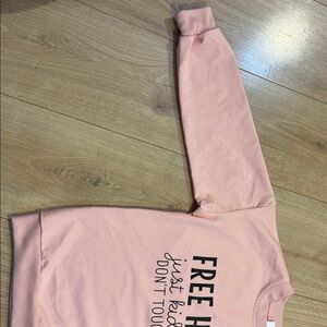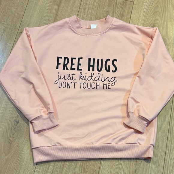 Pink sweatshirt from Temu. New never worn but washed, size says 9-10 but fits more like a medium. Comes from smoke free dog friendly home.