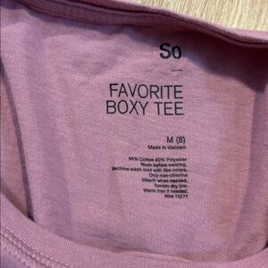 Dark dusty pink shirt SO brand size medium. Has one small stain on one sleeve and a discoloration stain on back. Comes from smoke free dog friendly home.
