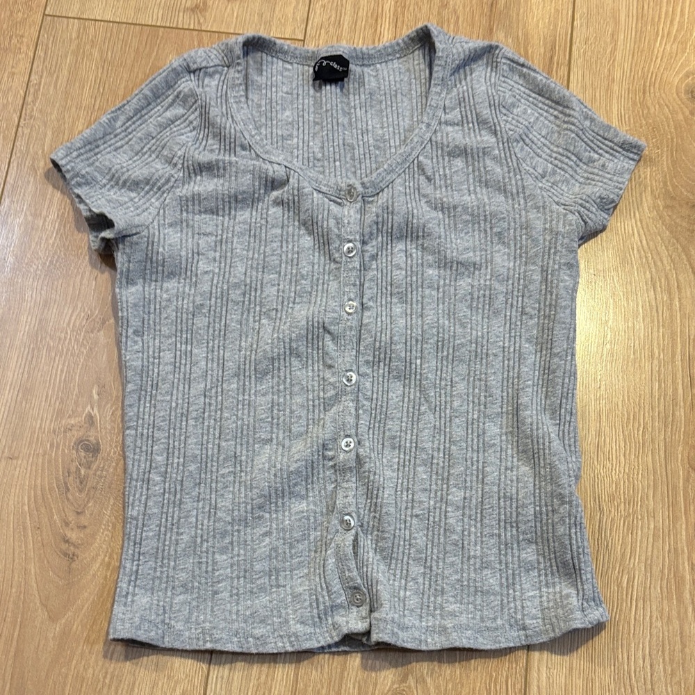 Girls button up short sleeved gray t-shirt by Art Class size large. Shirt is in good used condition with normal signs of wear/wash and comes from a smoke free dog friendly home.