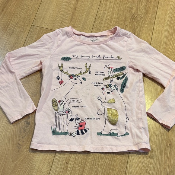 Light pink long sleeved Carters brand t-shirt size 6/6x. Shirt is in great used condition with light signs of wear/wash and no stains. Comes from a smoke free dog friendly home.