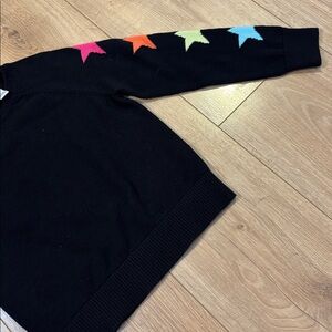 Black sweater with colorful stars going down one arm, size 5/6 from The Children’s Place. Sweater is in great used condition and comes from smoke dog friendly home. Offers welcome!