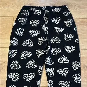 Soft black sweat pants with heart design size in XL but I think they run small brand is Btween. In good used condition with no flaws and come from smoke free dog friendly home.