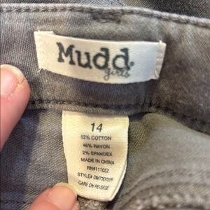 Gray skinny jeans by Mudd girls size 14. Made of a thinner jean material and very stretchy. Good used condition with some pilling but no stains. Come from smoke free dog friendly home.