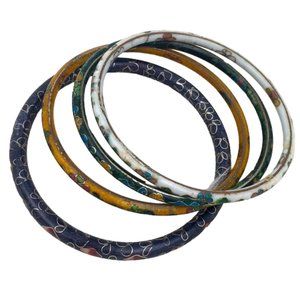 Bundle Set of Enamel Cloisonné Bangle Bracelets Set of 4: