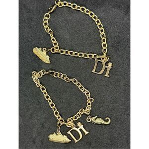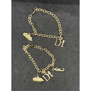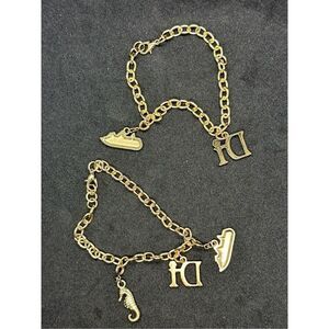 Bundle Set of two Vintage Di Gold Tone 5 Dangle Charms Chain Link Bracelets Good