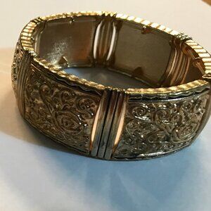 Bundle TWo vintage stretch bracelets 1" wide Gold and silver tone