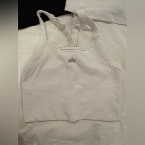 Classic American Apparel tank in solid black. Ribbed Alo fabric for a snug fit and Beyond Yoga crop with attached bra. Clean, simple silhouette. Easy to pair with any outfit.