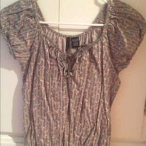 American Rage cotton tank top with elastic waist. And pink and gray sleeveless top with elastic waist. Both will be mid-drift