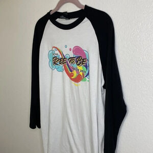 Tik ToK Pride 2021 “Free To Be” three quarter length sleeve baseball t shirt. Features black sleeves and round crew neck, Multi color Pride logo on center on white. In good condition. Cotten Blend. Also comes with the matching TIK TOK hat. Black baseball hat with raised red embroidered “FREE” over the same multi color pride. Back has white embroidered TIk ToK Pride 2021. Rare Find