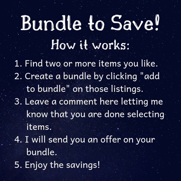 Bundle two or more items from my closet and comment to let me know you're done bundling. I will send you an offer!
