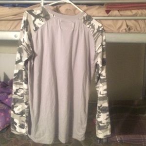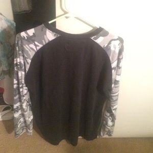 2 Needle & Thread Camo long sleeve shirts. One dark grey, light grey and white. The other black, white and grey.
