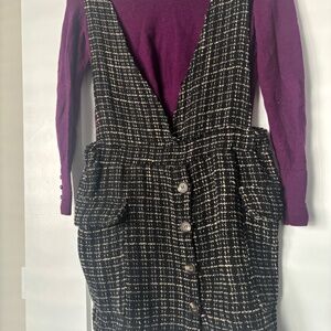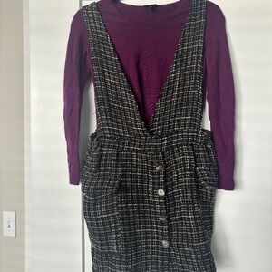 two-piece bundle: long-sleeved blouse and overalls. Both size S