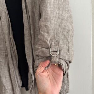 Soft and lightweight grey linen jacket with a relaxed fit #linenjacket