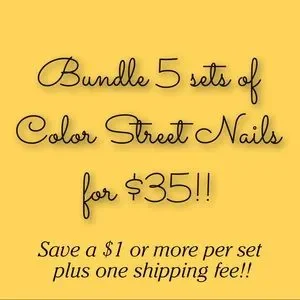 Add five Color Street sets to a bundle and I will send the off of $35 (not including shipping)! Great deal!