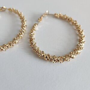 Chunky gold statement hoop earrings have a geometric/cube/chunky design which adds a lot of interest and texture, making these a step above your every day plain gold hoops. These have some weight to them which is nice, but they are still comfortable enough for daily wear. You can wear these every day with a casual outfit or dress them up for a more formal/party look. Each earring measures about 2"