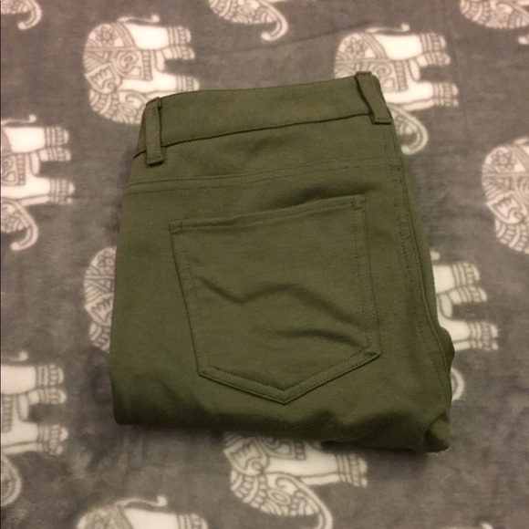 are these a jean material? And is it olive green color? Thanks!