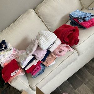 2 dresses, one romper, 4 pairs of shorts, 7 shirts, 7 tanks, 7 long sleeves, 4 sweaters, two sweatshirts and 4 long sweater dresses