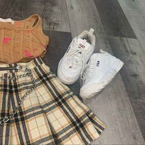 This bundle comes with forever 21 skirt XS ( never been used) FILA shoes size 5 and Size small play boy shirt.