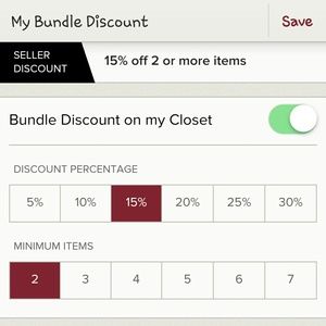 Bundle 2 or more items from my closet & receive 15% off of your order & pay for shipping only once :)