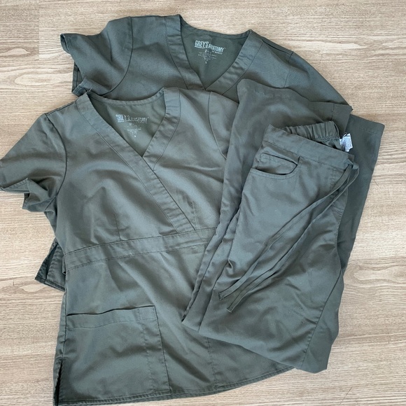 Bottoms are xs, fits me, usually a small. Bottoms have slightly Flared ankle