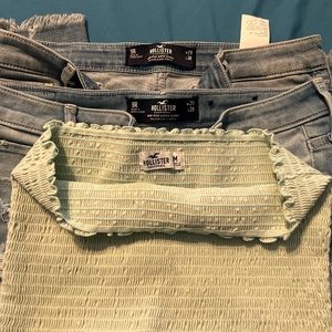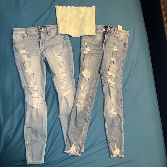 Two pairs of 9R distressed Hollister skinny jeans.