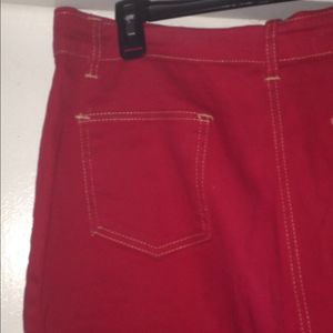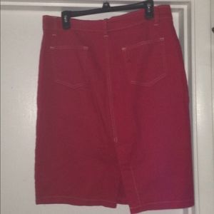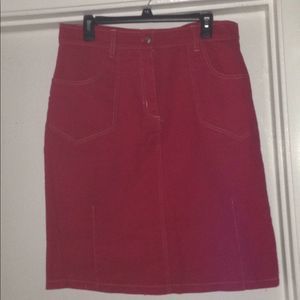 Red denim skirt pockets front and back.. worn few times! Bundle item only! Bundle 3+saves 20%+discount shipping!. Top rated Seller. Pls shop with confidence and Happy Poshing!🌷😊😀