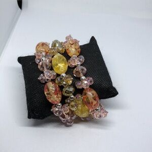 Sparkling crystals with confetti like faux glass look acrylic beads. So pretty. Almost candy like.