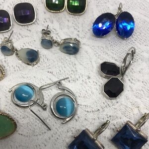 Bundle lot 9 classy elegant earrings bejeweled faux gemstone look post dangle.