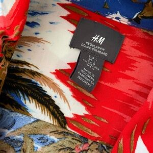 Bundle lot pair Hawaiian aloha camp shirts Zara H&M both L both 100% viscose fun prints some random loose threads otherwise excellent